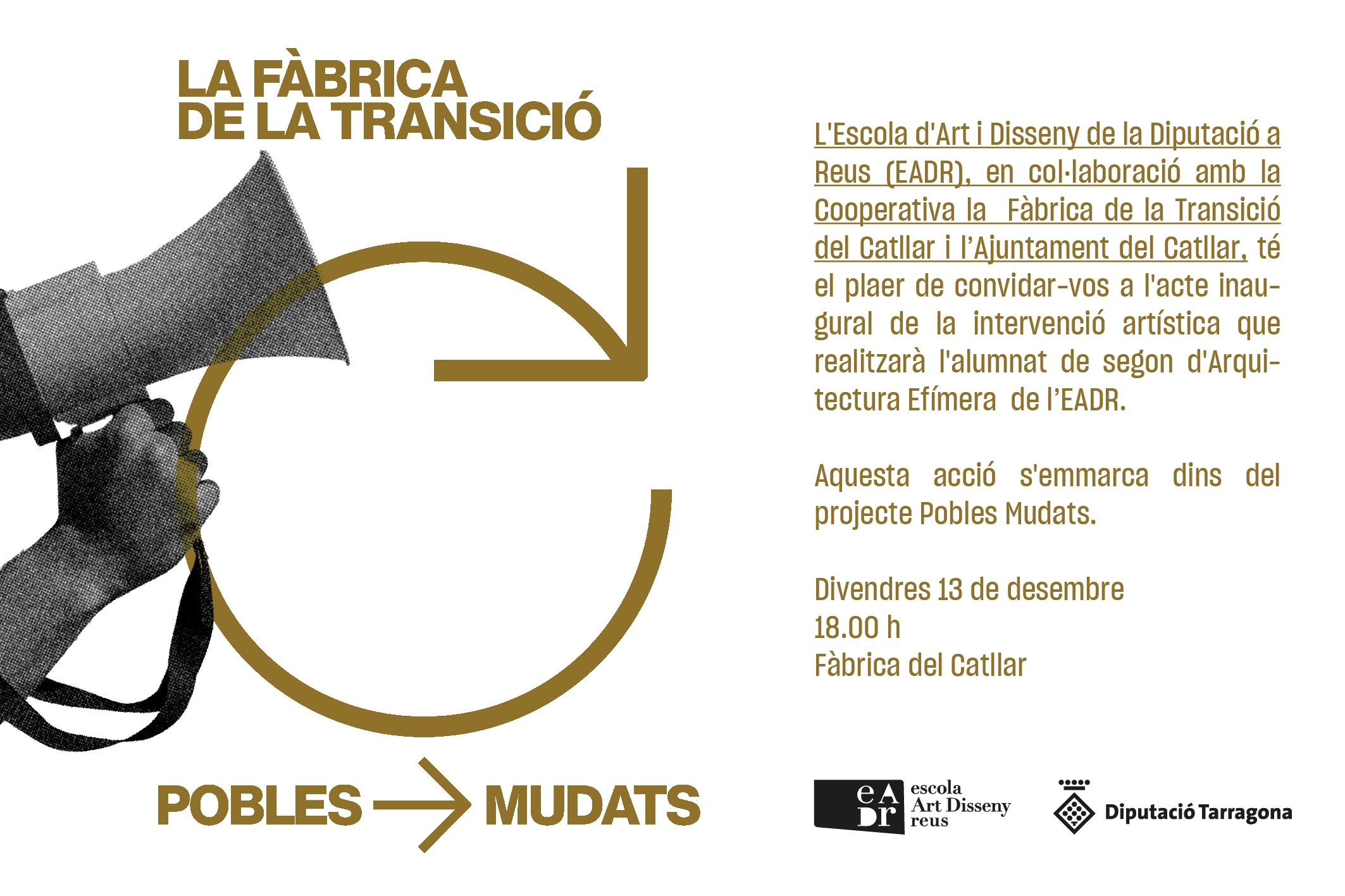 Inauguració de l'acció artística efímera a La Fàbrica del Catllar amb l'alumnat de l'Arquitectura Efímera de l'Escola d'Art i Disseny de la Diputació a Reus