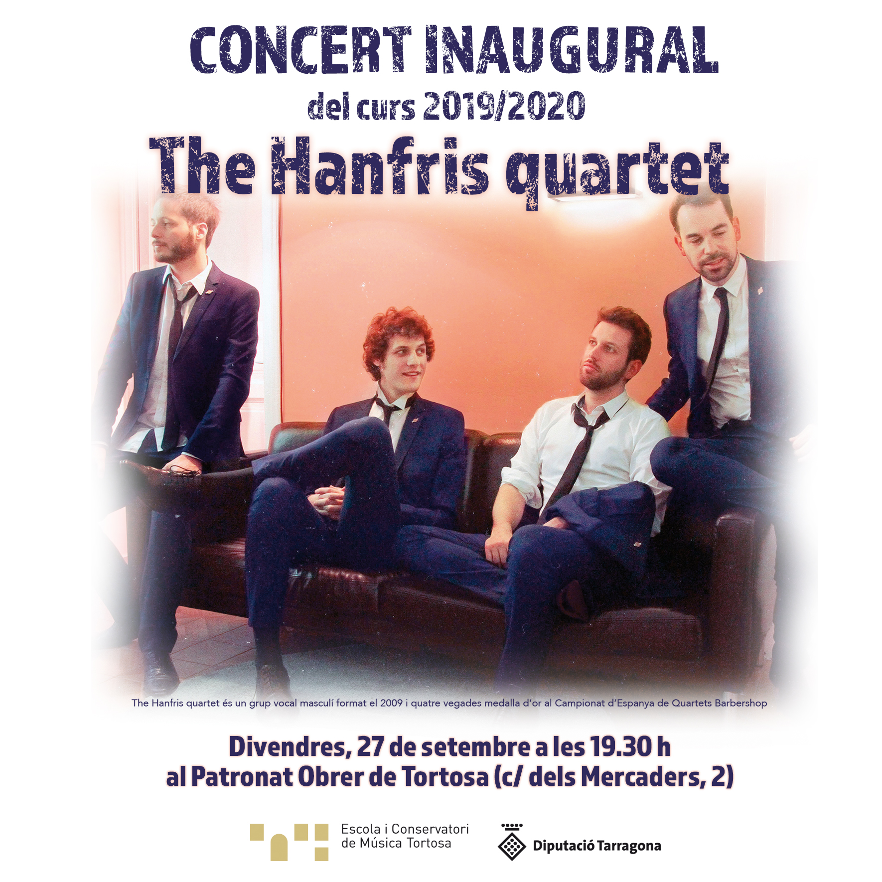 Les quatre veus de 'The Hanfris Quartet' seran els encarregats d'inaugurar 'a capella' el nou curs del centre. The Hanfris quartet és un grup vocal masculí format el 2009 i quatre vegades medalla d’or al Campionat d’Espanya de Quartets Barbershop o música de barberia és un estil de cant a capella molt popular als Estats Units i en països del nord d’Europa com Suècia o el Regne Unit. El seu nom prové del fet que eren precisament les barberies els llocs on originàriament grups d’homes anaven a cantar aquestes cançons.