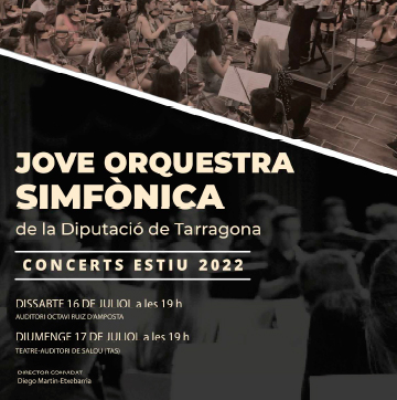 Aquest dissabte dia 16 de juliol, la Jove Orquestra Simfònica de la Diputació ofereix un concert, obert a tothom, a l'Auditori Octavi Ruiz d'Amposta.