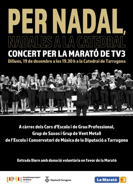 Amb motiu de la Marató de TV3 l'Escola i Conservatori de Música de la Diputació a Tarragona ofereix un concert de Nadales a la Catedral de Tarragona.