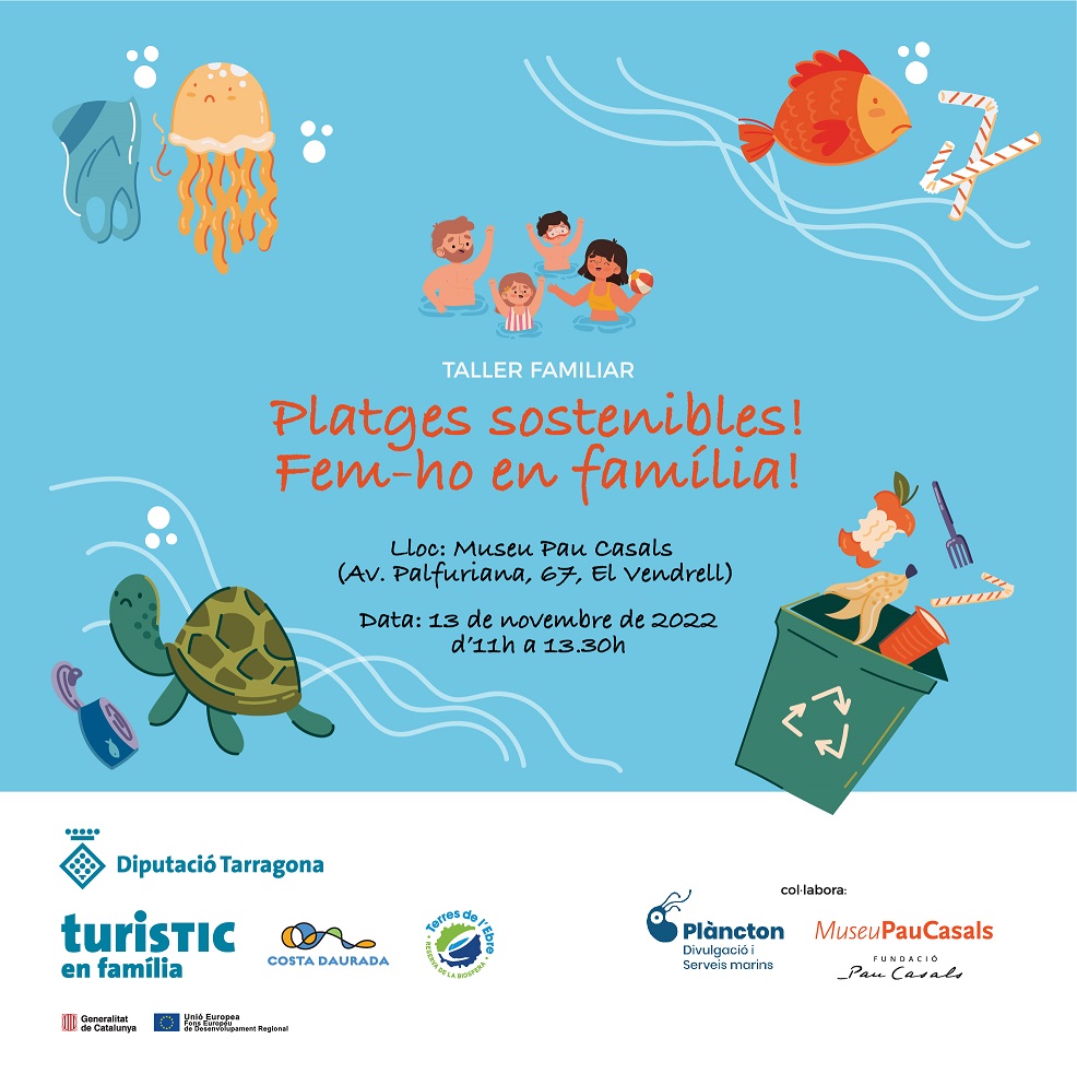 El diumenge 13 novembre 2022 Agenda cultural Què: Taller familiar: Platges sostenibles! Fem-ho en família! On: Museu Pau Casals. El Vendrell Quan: 13 novembre 2022 Hora: De 11:00 h a 13:30 h Projectes transversals Publicat04/11/2022 Imprimir L'operació Espai de Descoberta del PECT turisTIC en família organitza un taller gratuït adreçat a les famílies per conscienciar-les sobre la necessitat de tenir cura del litoral. Cal fer inscripció prèvia aquí. Banner de la jornada