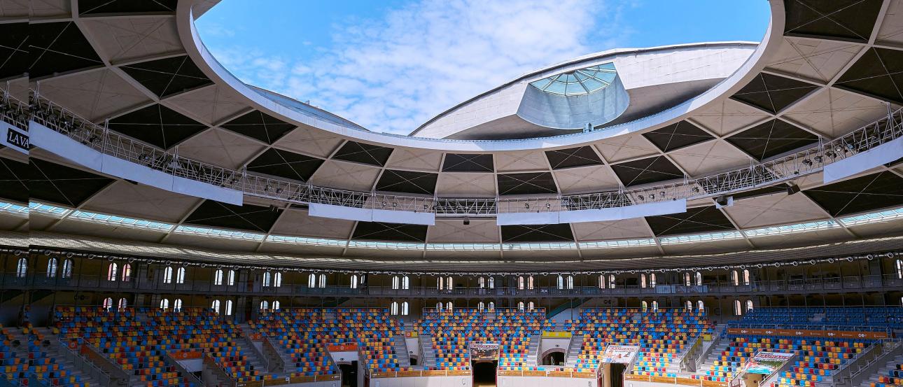La coberta fixa té un buit central de 40 m de diàmetre, tancat per la coberta mòbil, retràctil, del mateix diàmetre, que permet tancar el recinte en determinats tipus d’esdeveniments. La zona central de la coberta mòbil està formada per un òcul central vidriat de 10 m de diàmetre.