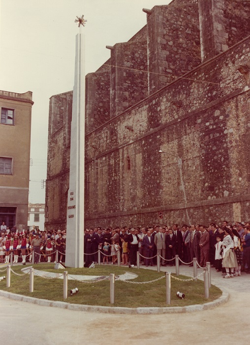 Les imatges que recupera l’Arxiu de la Diputació de Tarragona, obra del fotògraf tarragoní Chinchilla, immortalitzen aquesta commemoració que es desenvolupà a la Plaça Arnau de Palomar, just en un lateral de l’Església de Sant Jaume, on es va ubicar l’esmentat monument. Els encarregats de presidir-lo foren l’aleshores alcalde de Riudoms, Lluís Torrell, i el president de la Diputació de Tarragona en aquella època, Josep Clua, així com d’altres autoritats de la comarca.