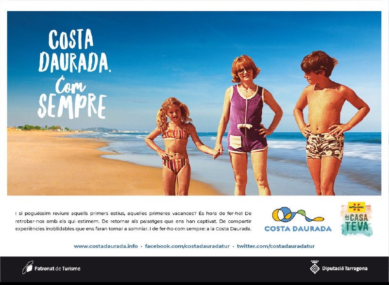 'Costa Daurada, com sempre' recull l’essència de la campanya per aquesta destinació. A través dels records, es proposa rememorar aquells llocs, moments i experiències viscudes a la Costa Daurada que formen part del nostre paisatge emocional i de les nostres vacances en família. Una campanya que viatja en el temps però que reforça un missatge sobre la Costa Daurada i a la seva oferta turística actual: els valors d’un territori que no han canviat.