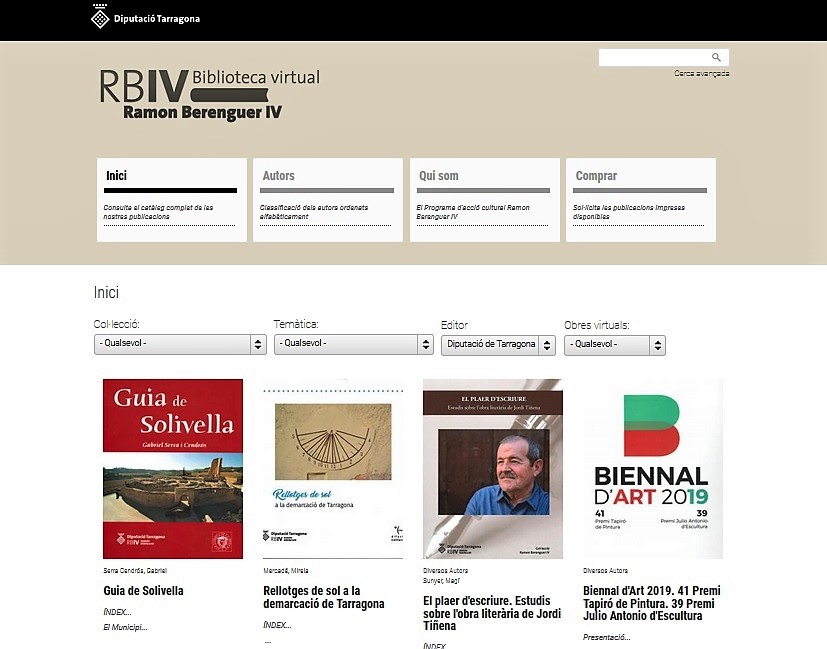 Els darrers títols publicats per la Diputació de Tarragona són Rellotges de sol de la demarcació de Tarragona, de Mireia Mercadé (Col·lecció Difusió Cultural, 2019); Guia de Solivella, de Gabriel Serra (Col·lecció Els llibres de la Medusa, 2019); La Mancomunitat de Catalunya a les comarques tarragonines. Projectes i realitats, de Manel Güell i Eugeni Perea (Col·lecció RBIV, 2019); El plaer d'escriure. Estudis sobre l'obra literària de Jordi Tiñena, de diversos autors (Col·lecció RBIV, 2019); Espais urbans porticats a la demarcació de Tarragona, de Joan Figuerola (Col·lecció RBIV, 2019); Biennal d'art 2019 (MAMT, 2019); XVI Jornades de pedagogia de l'art i museus 2019. Arts, museu i creativitat (MAMT, 2019), i Joan Casals. Itinerari el el laberint (MAMT, 2019).