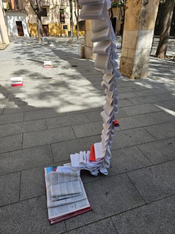 En el marc de la celebració de Sant Jordi 2026, l'Escola d'Art i Disseny de la Diputació a Tarragona torna a vestir d'art amb llibres reciclats en una nova edició de la mostra artística "Efímera:art al carrer", a Vila-seca. Una mostra, impulsada per l'Ajuntament de Vila-seca, que transforma diversos espais del centre històric del municipi amb escultures i instal·lacions creades per l'alumnat del Cicle Formatiu de Grau Superior d'Arts Aplicades al mur.
