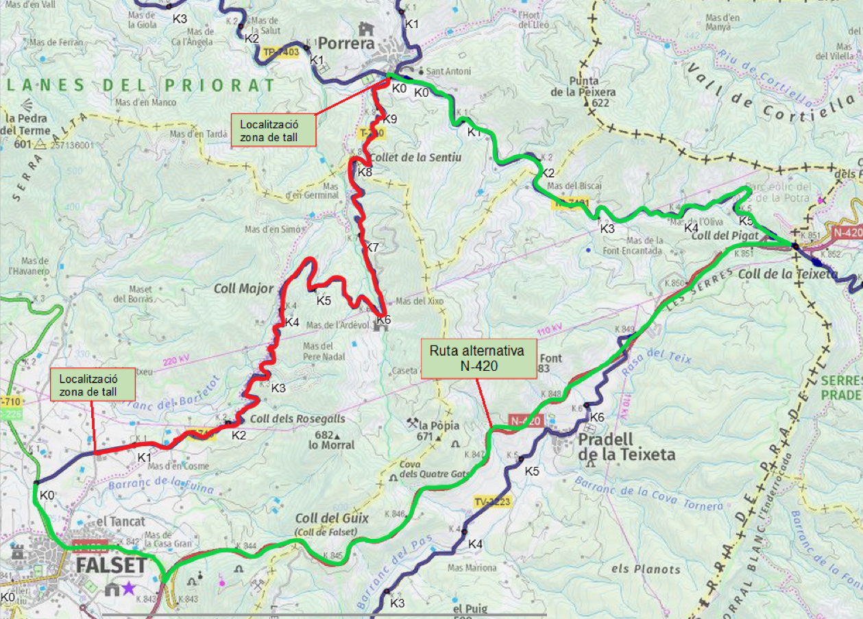 - Afectació a la carretera: Tall total de la carretera en ambdós sentits. Es permetrà l’accés puntual a finques.
