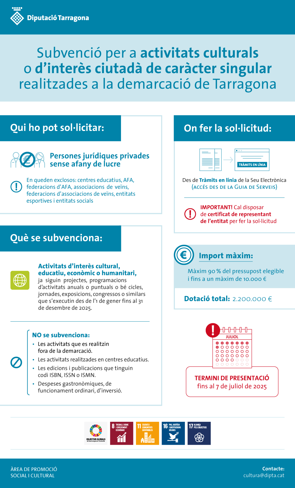 Subvenció destinada a persones jurídiques privades sense afany de lucre per a la realització d'activitats i actuacions culturals o d’interès ciutadà a la demarcació de Tarragona.