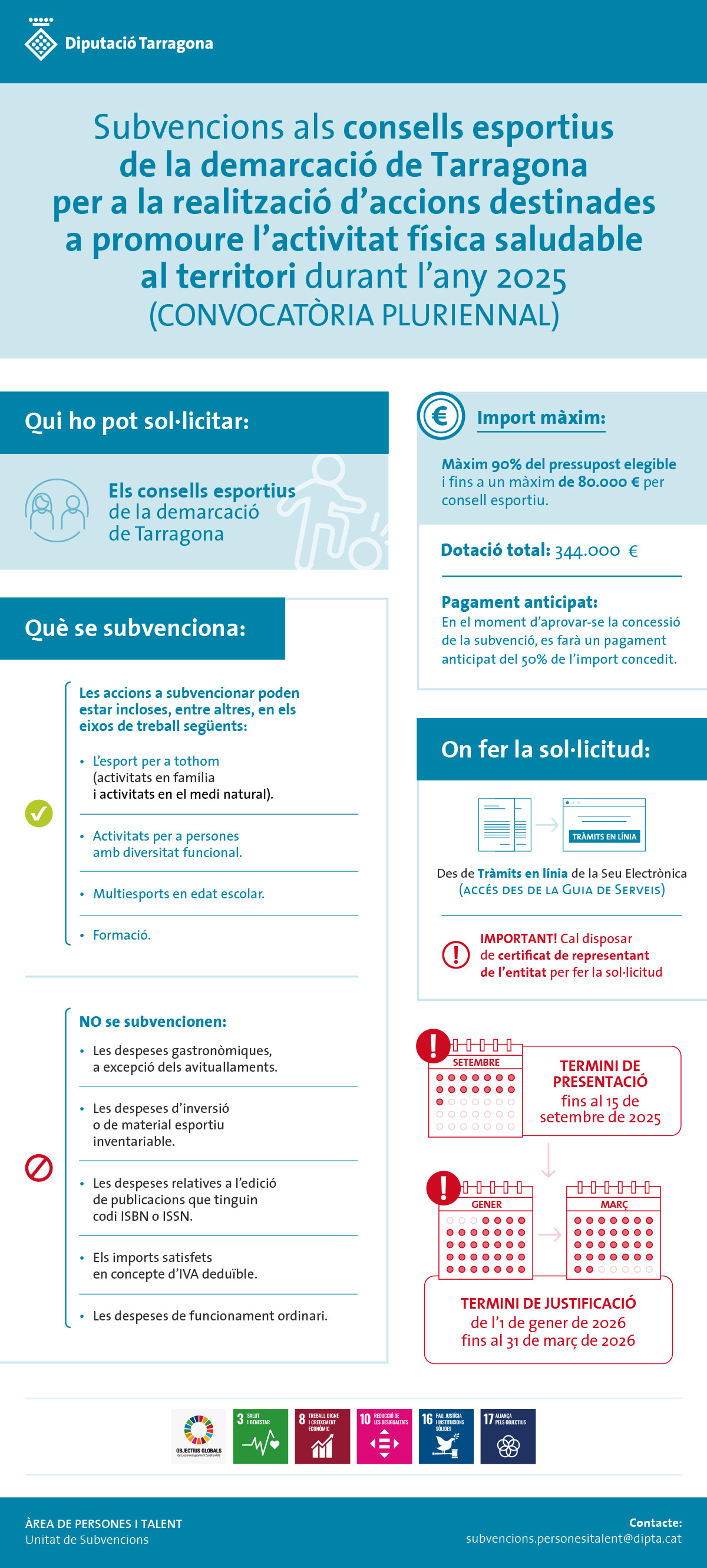 Tipus d'actuació Subvencions, beques i premis T'ajudem Sol·licita-ho Descripció Convocatòries anteriors Sense descripció. Resum infogràfic de la convocatòria 2025 Sense documents relacionats. × En l'actualitat, no existeix cap tràmit de sol·licitud disponible per als procediments administratius associats a aquest servei. Tan bon punt es torni a obrir, trobaràs en aquesta pàgina els enllaços als tràmits associats. T'ajudem, contacta amb nosaltres